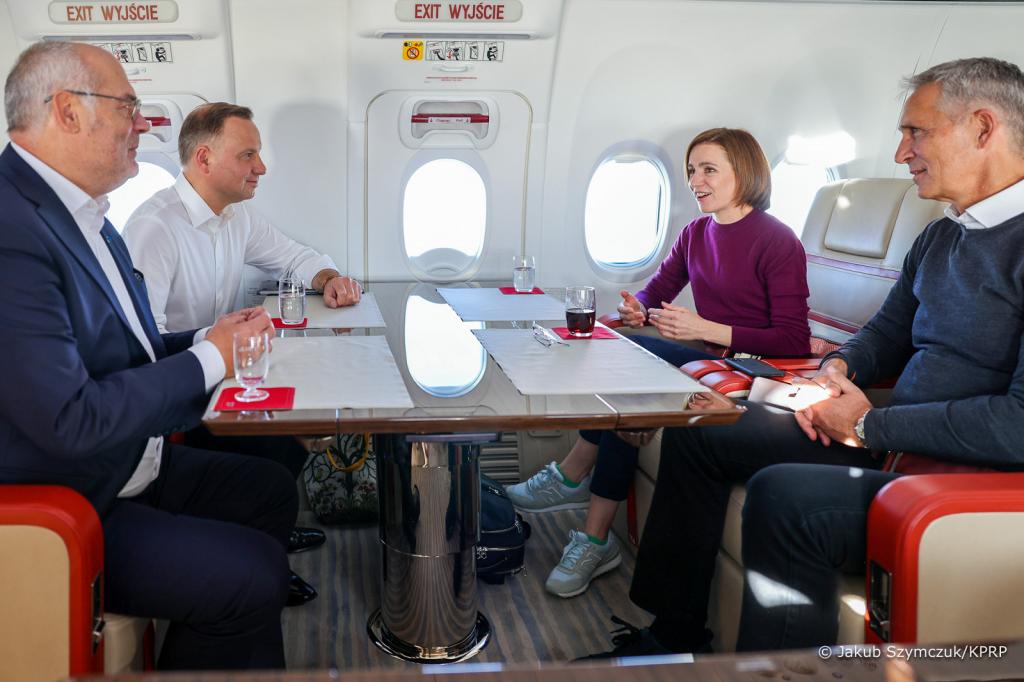Na pokładzie samolotu do Nowego Jorku Parze Prezydenckiej towarzyszyli Prezydent Republiki Mołdawii Maia Sandu, Prezydent Republiki Estońskiej Alar Karis z Małżonką oraz Sekretarz Generalny NATO Jens Stoltenberg.