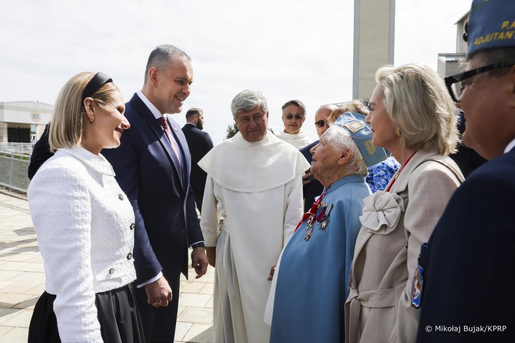 Wizyta Marty i Karola Nawrockich w sanktuarium rozpoczęła się od uroczystego odsłonięcia tablicy upamiętniającej śp. Premiera Jana Olszewskiego.