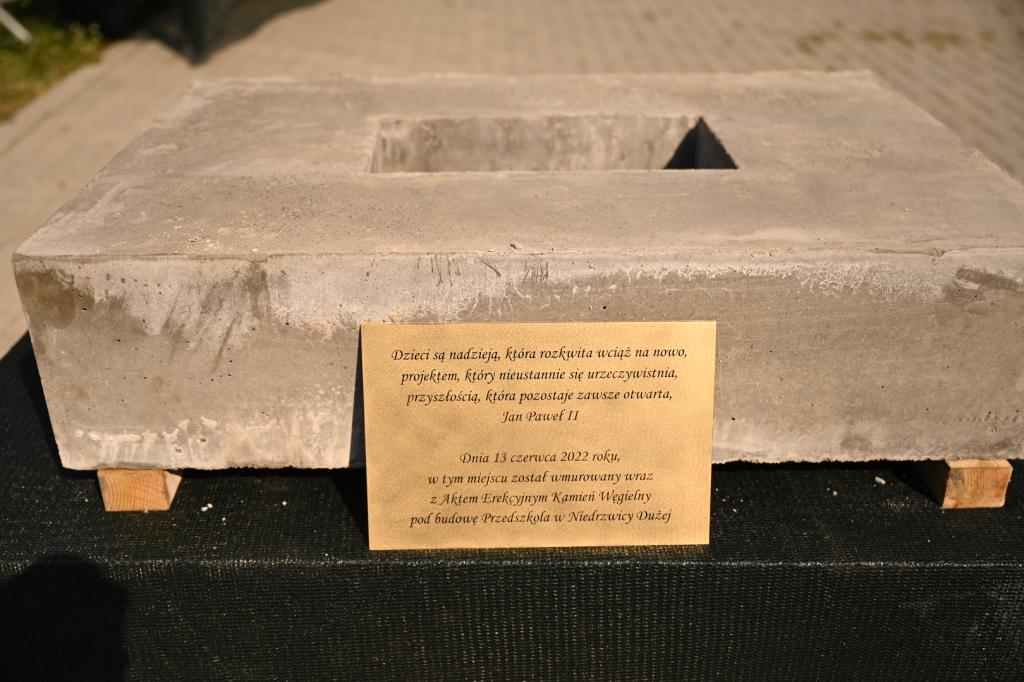 Minister Przemysław Czarnek uczestniczył w uroczystości podpisania aktu erekcyjnego i wmurowania kamienia węgielnego pod budowę przedszkola w Niedrzwicy Dużej w województwie lubelskim. Środki na realizację inwestycji pochodzą z programu Polski Ład.