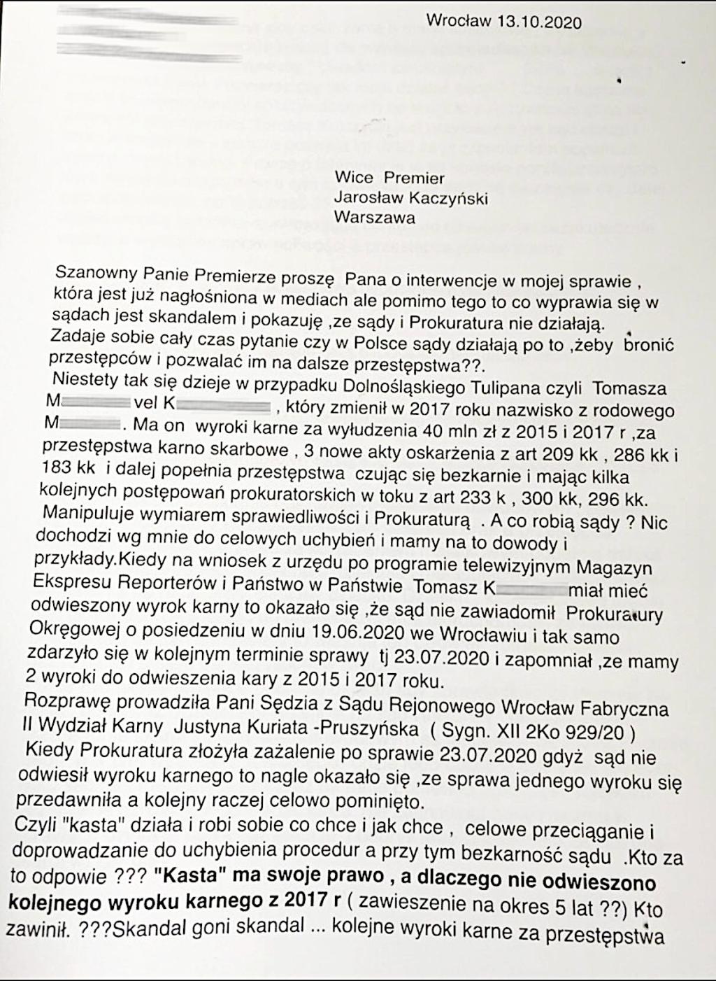 [VIDEO] Wicepremier Jarosław Kaczyński podjął interwencję w sprawie zdumiewająco bezkarnego, tzw. wrocławskiego Tulipana Tomasza K.! W środę kolejny proces o jego gigantyczne oszustwa rozpocznie się przed Sądem Okręgowym w Jeleniej Górze!