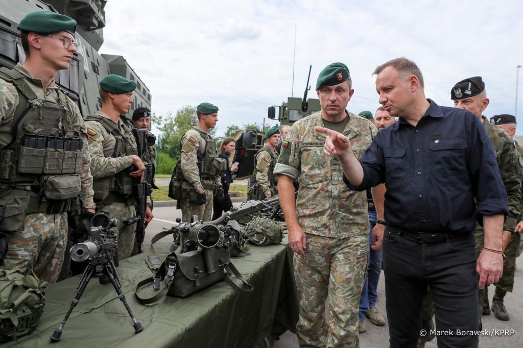 Przypomniał, że obszar przesmyku suwalskiego chroniony jest przez wojska polskie i litewskie, wzmocnione obecnością wojsk sojuszniczych, które – jak mówił – pełnią służbę 24 godziny na dobę w stanie wysokiej gotowości. – To jest wymóg współczesności, zwłaszcza wobec rosyjskiej agresji na Ukrainę, w sytuacji, gdy w tej chwili na Białorusi są cały czas obecne wojska rosyjskie – zaznaczył Prezydent Duda.