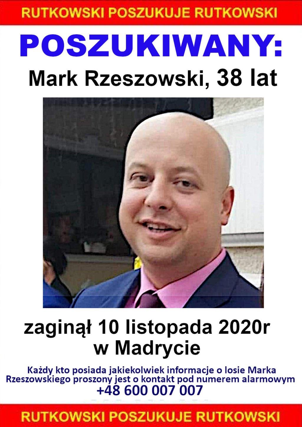 - Każdy kto posiada jakiekolwiek informacje o losie Marka Rzeszowskiego proszony jest o kontakt pod numerem